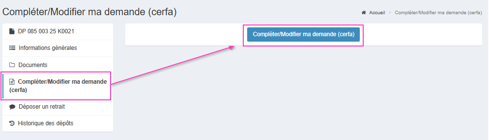 Cette fonctionnalité n'est disponible que pour les dossiers déposés nativement sur le Guichet.